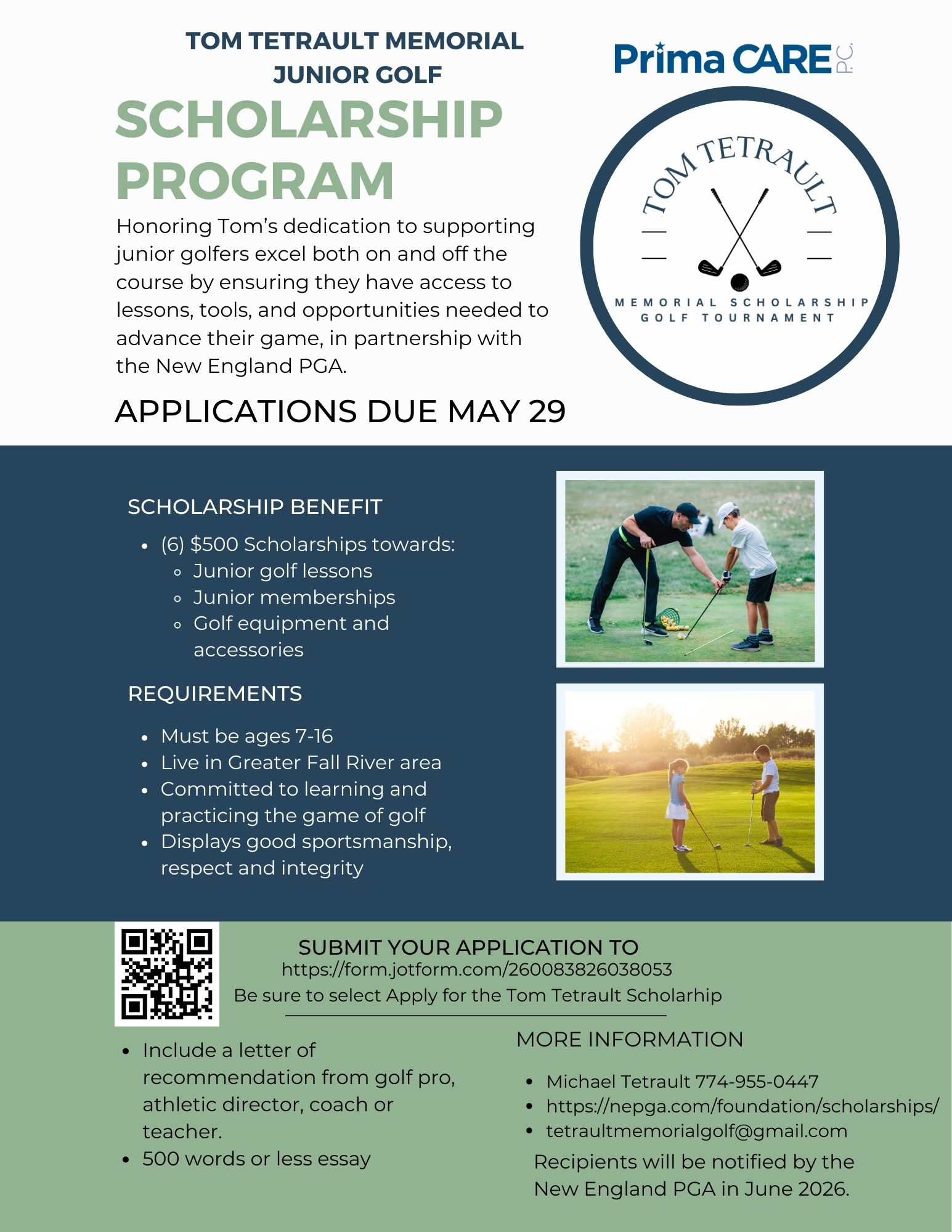 PGA REACH New England is proud to partner with the Tetrault Family and launch a new Scholarship for 2024, the Tom Tetrault Scholarship.